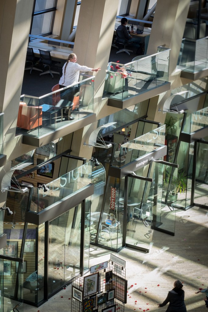 Reflecting on my age, I threw 5 gallons of rose petals from the 3rd floor SLC library balcony.