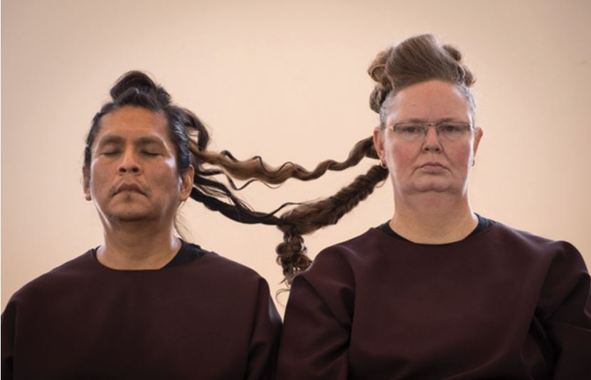 While sitting next to each other, Sasha Thompson grafted my and Eugene Tachinni’s hair together.
